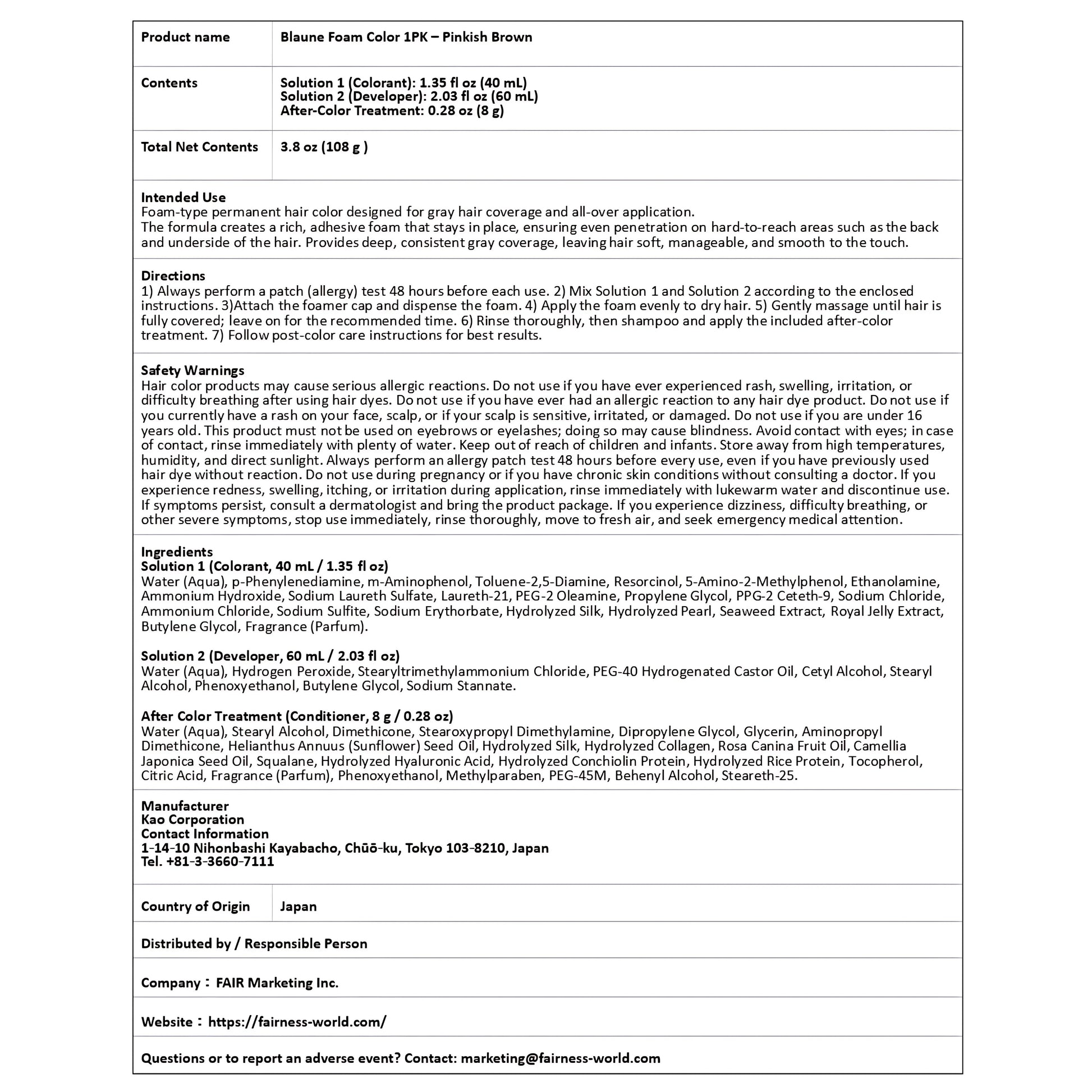 Blaune Foam Color 1PK – Pinkish Brown | Japanese Hair Dye Made in Japan