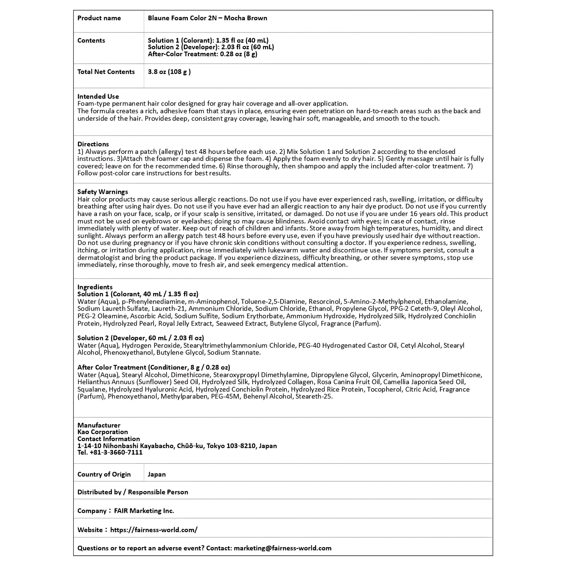 Blaune Foam Color 2N – Mocha Brown | Japanese Hair Dye Made in Japan