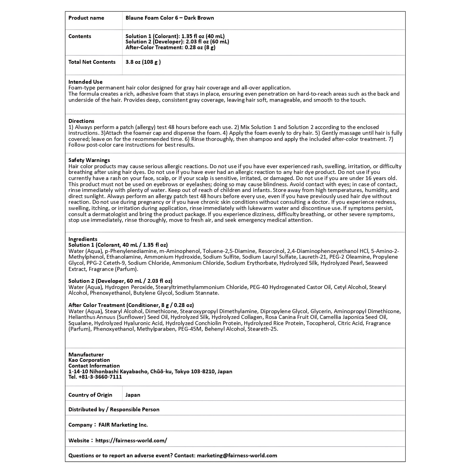 - Patch Test: Perform a skin allergy test 48 hours before every use, even if you have used hair dye before.