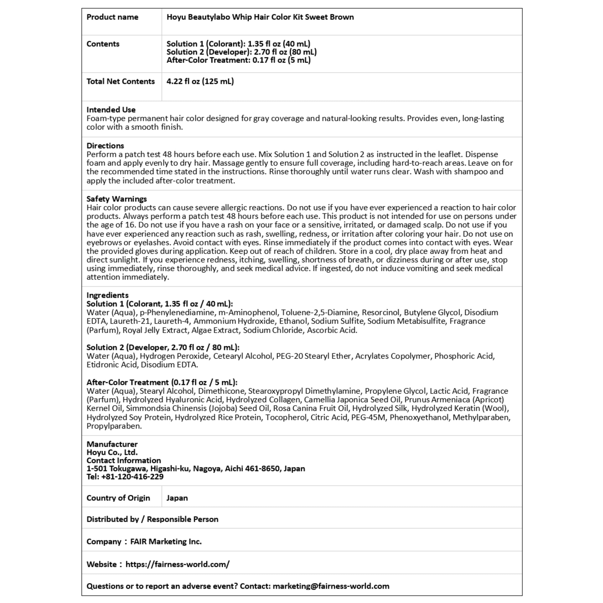 Hoyu Beautylabo Whip Foam Hair Color Kit – Sweet Brown Japanese Hair Dye Made in Japan