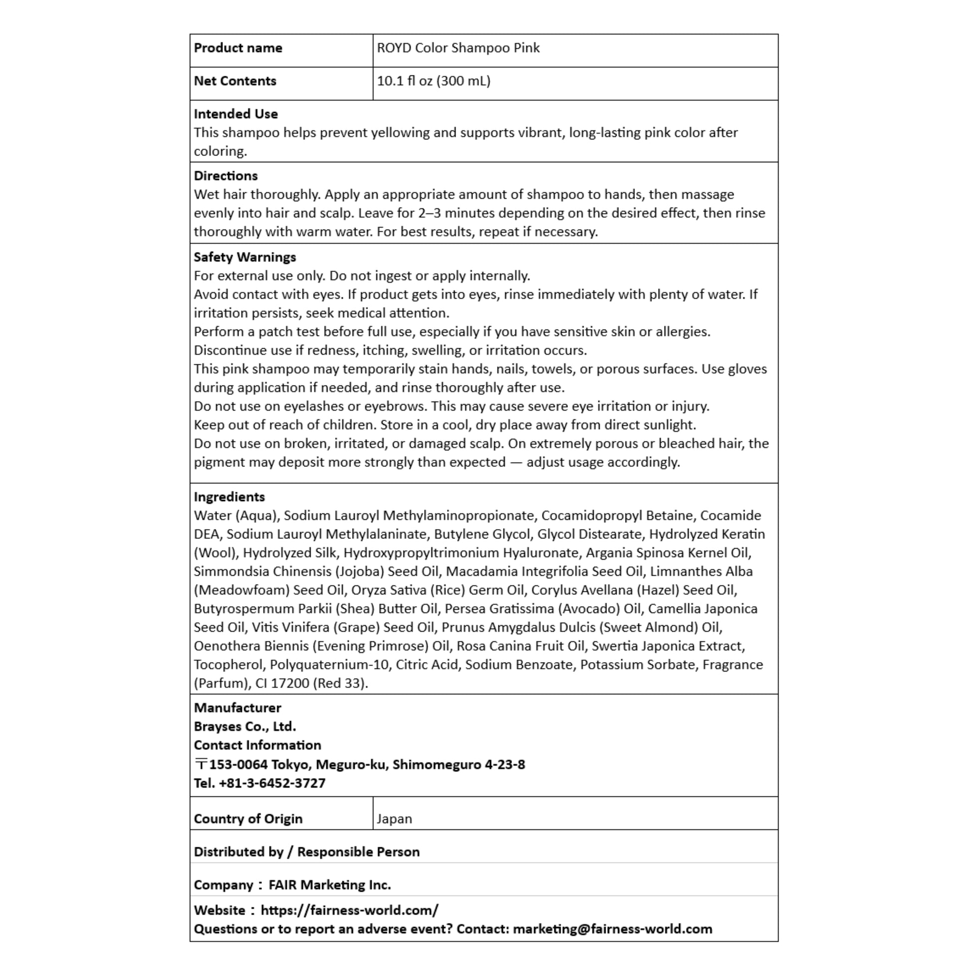 ROYD Color-Depositing Pink Shampoo 10.1 fl oz (300 mL) – Maintains Vibrant Pink Hair & Prevents Yellowing Japanese Hair Color Shampoo Made In Japan