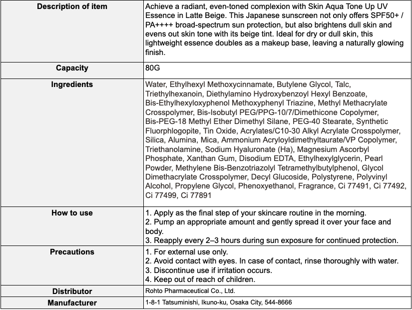 ☀️ Skin Aqua Tone Up UV Essence – Latte Beige – 80g